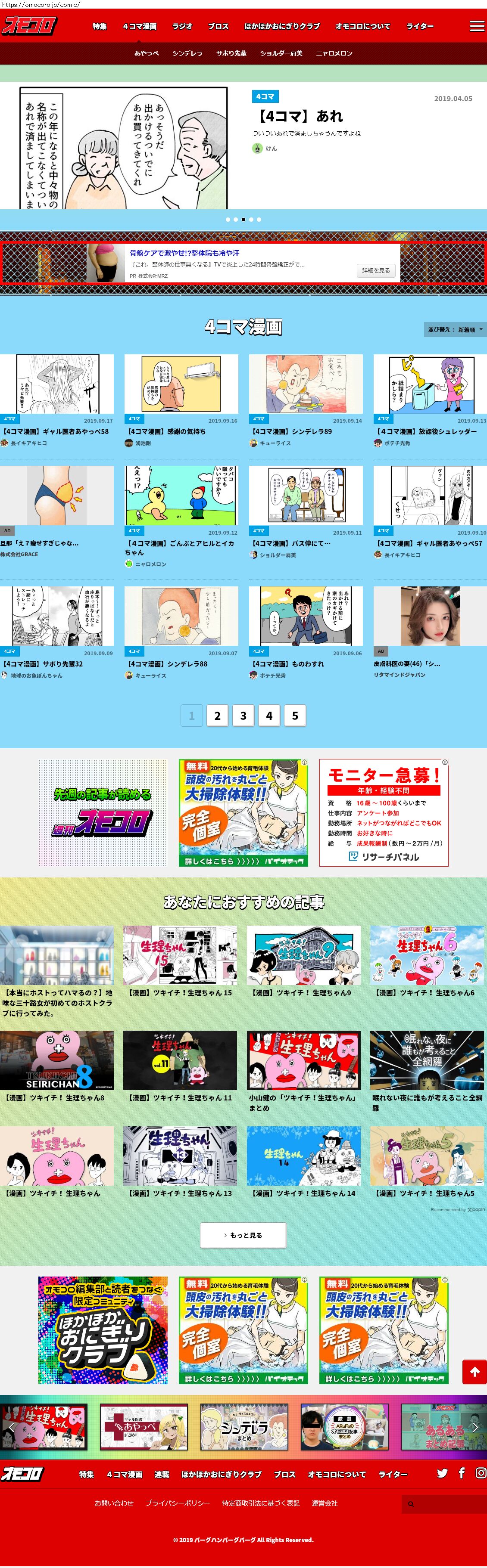 Webメディア 広告枠に赤枠付き