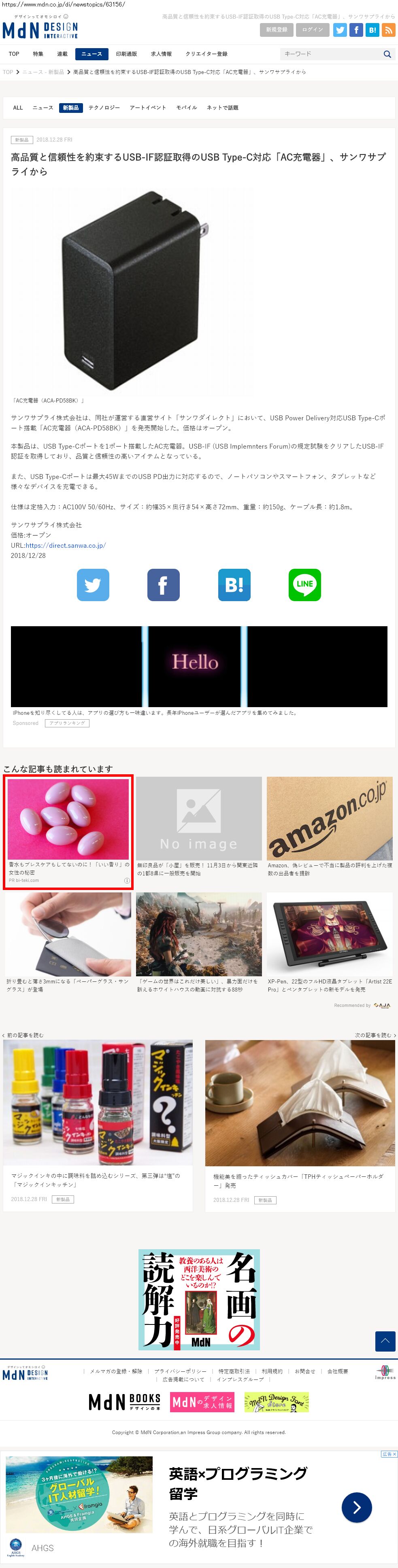 Webメディア 広告枠に赤枠付き