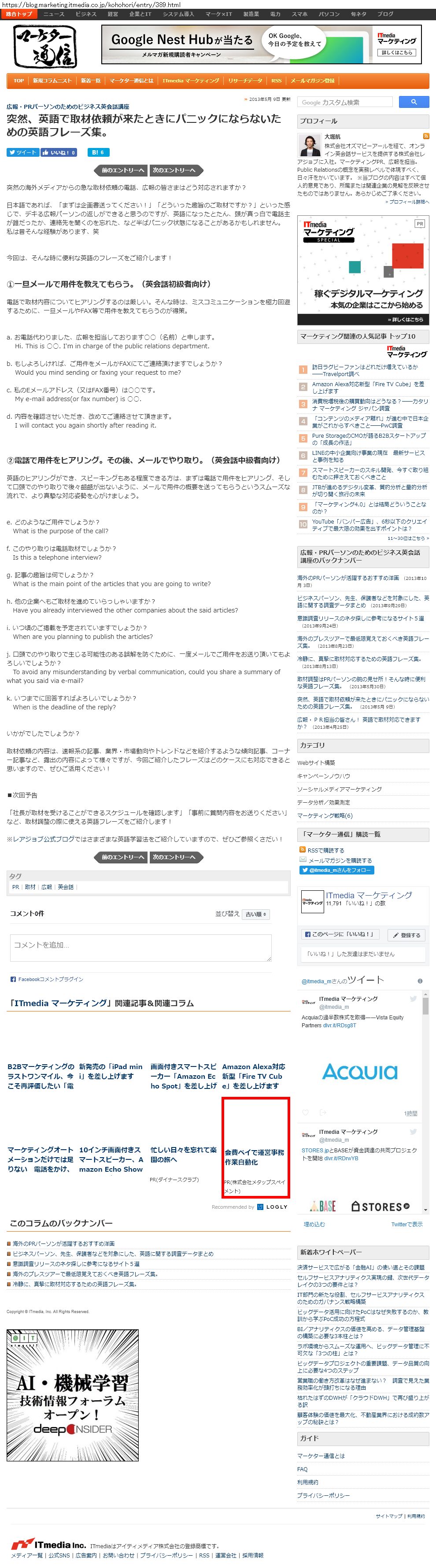 Webメディア 広告枠に赤枠付き
