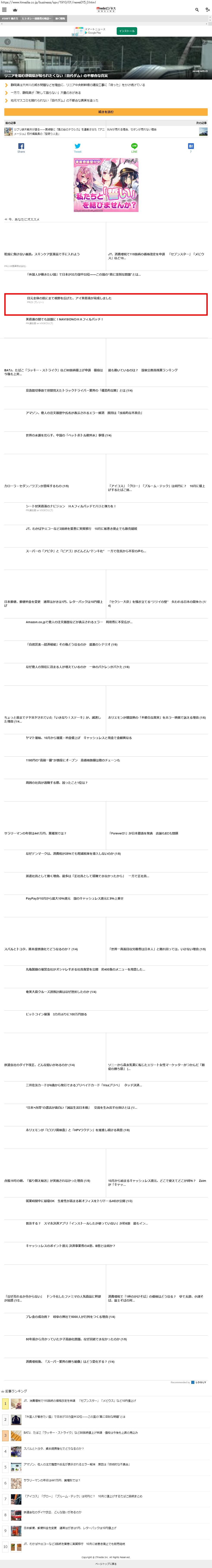 Webメディア 広告枠に赤枠付き