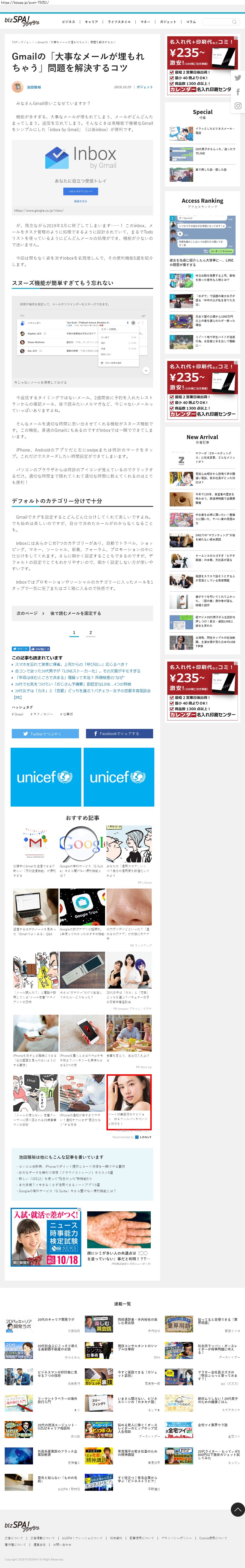 Webメディア 広告枠に赤枠付き