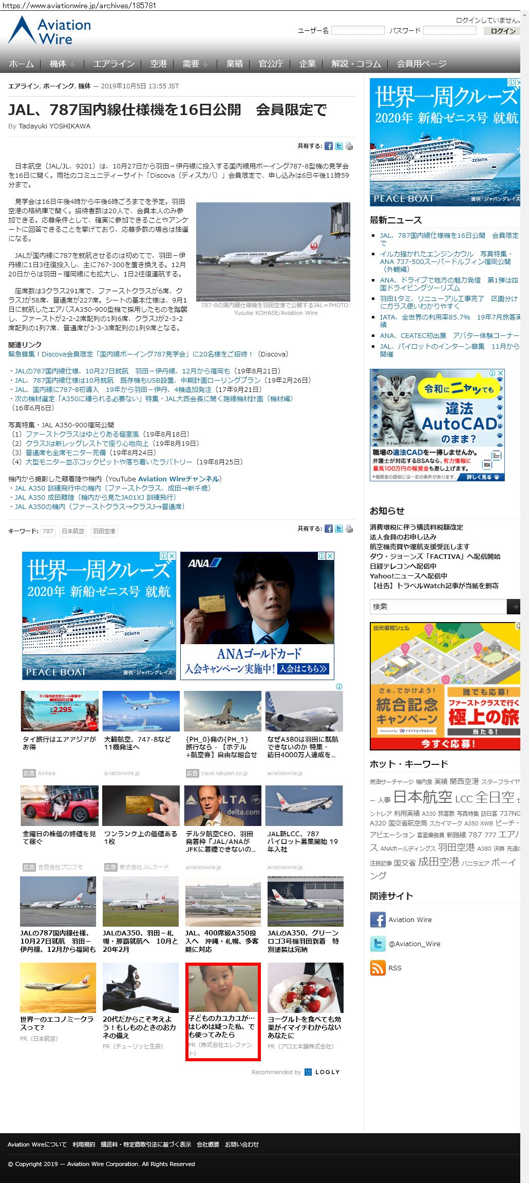Webメディア 広告枠に赤枠付き