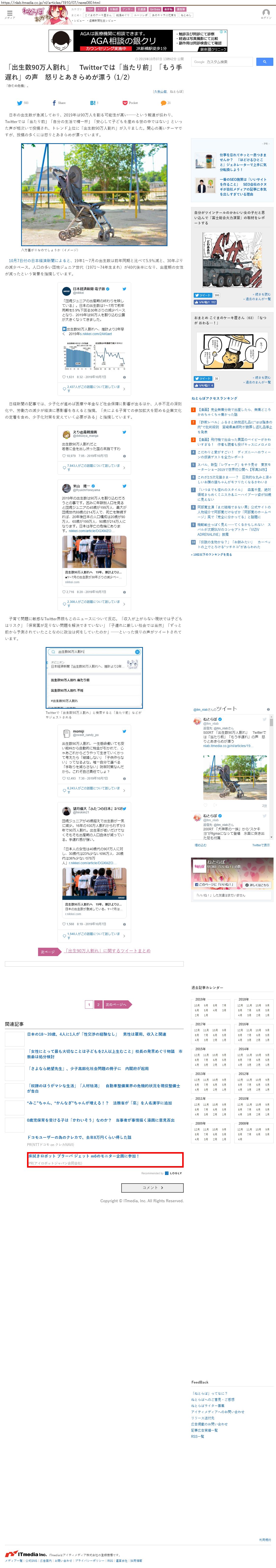 Webメディア 広告枠に赤枠付き