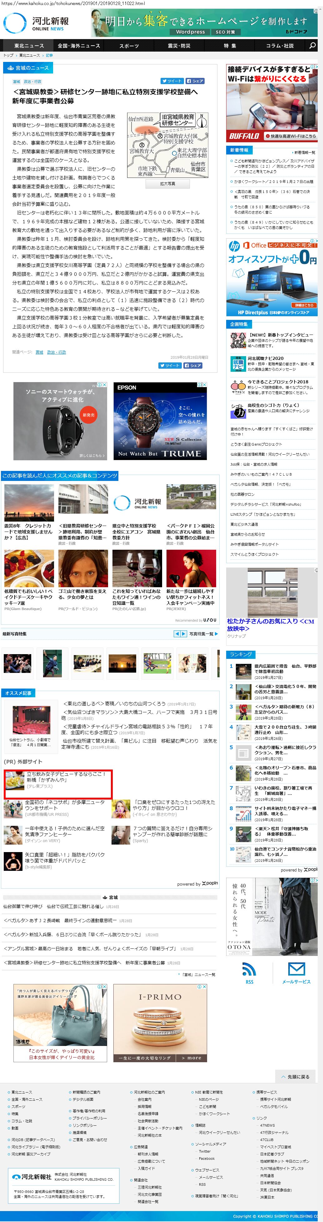 Webメディア 広告枠に赤枠付き