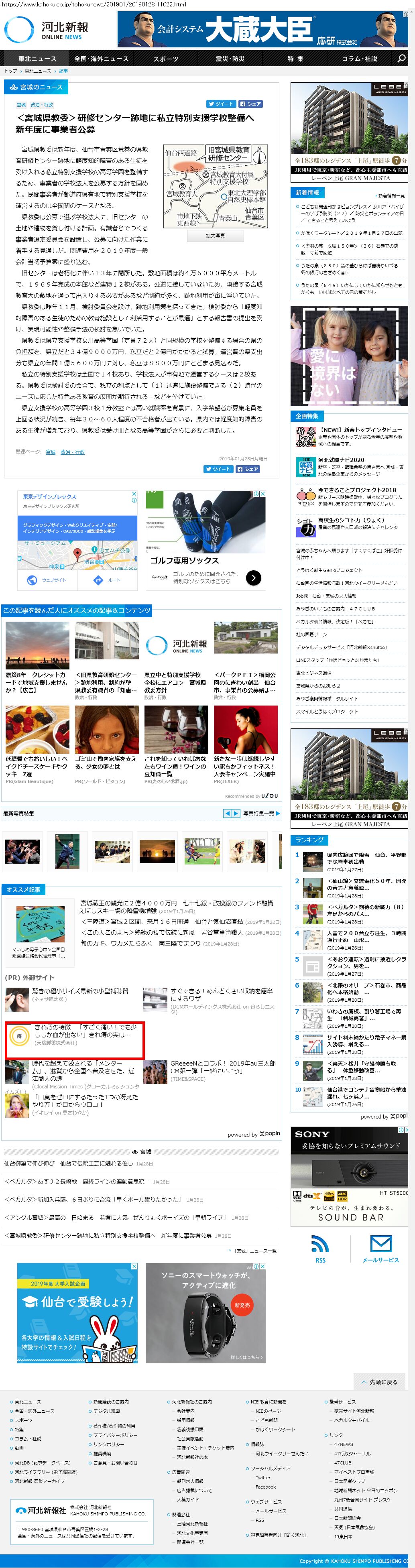Webメディア 広告枠に赤枠付き