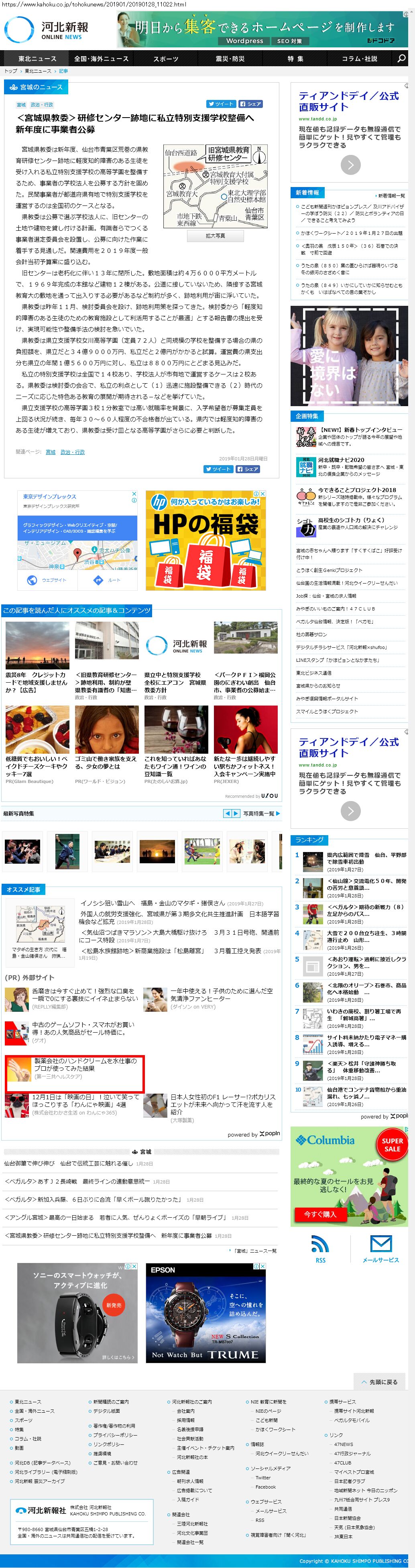 Webメディア 広告枠に赤枠付き