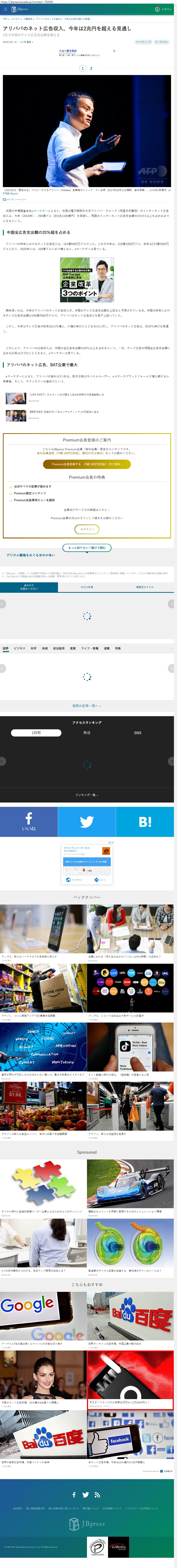 Webメディア 広告枠に赤枠付き