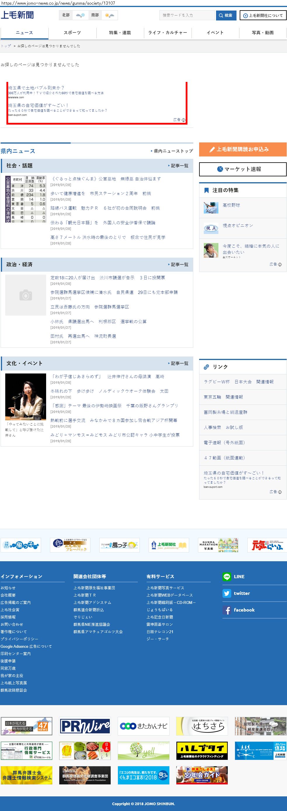 Webメディア 広告枠に赤枠付き