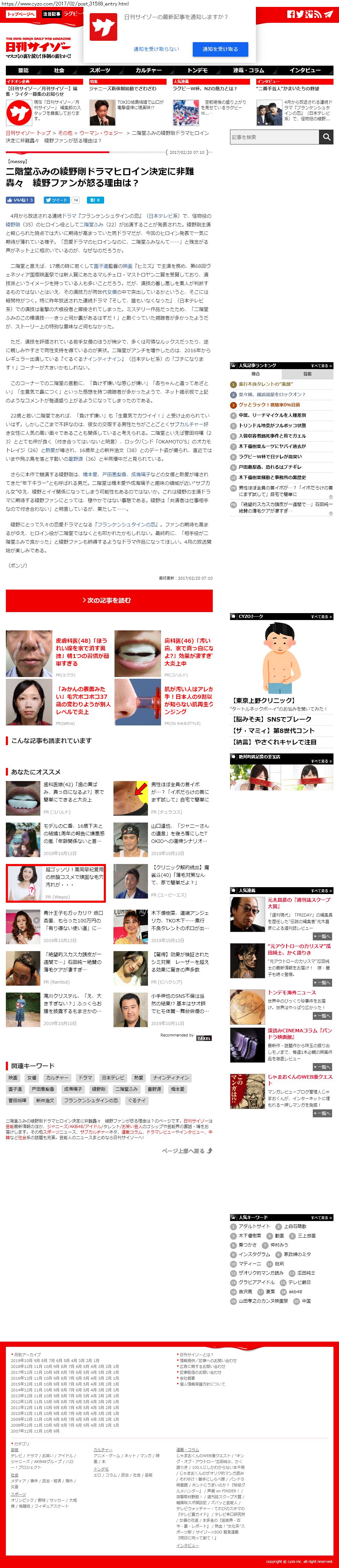 Webメディア 広告枠に赤枠付き