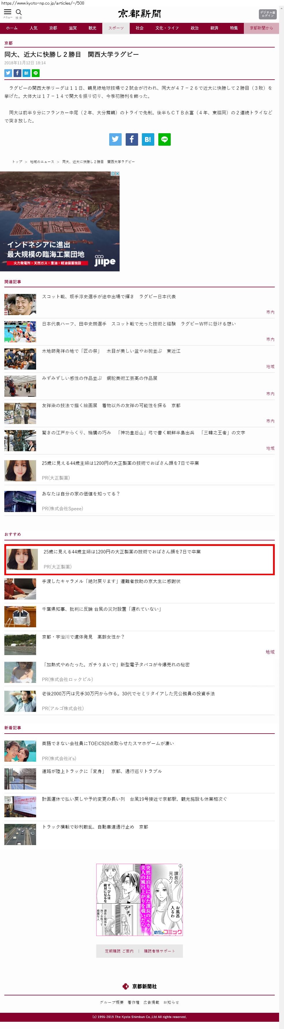 Webメディア 広告枠に赤枠付き