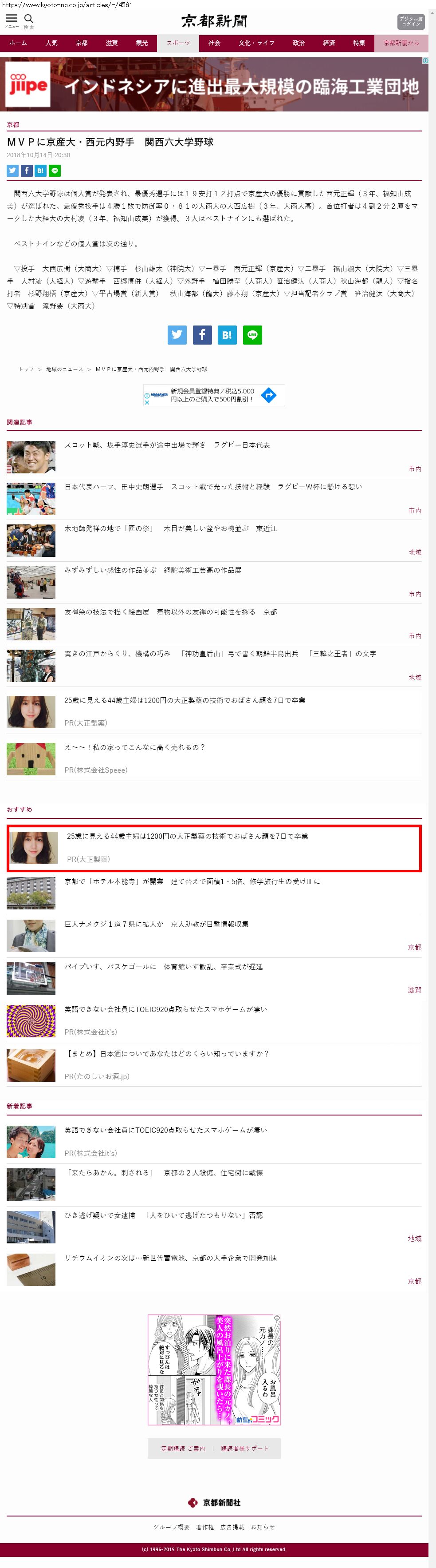 Webメディア 広告枠に赤枠付き