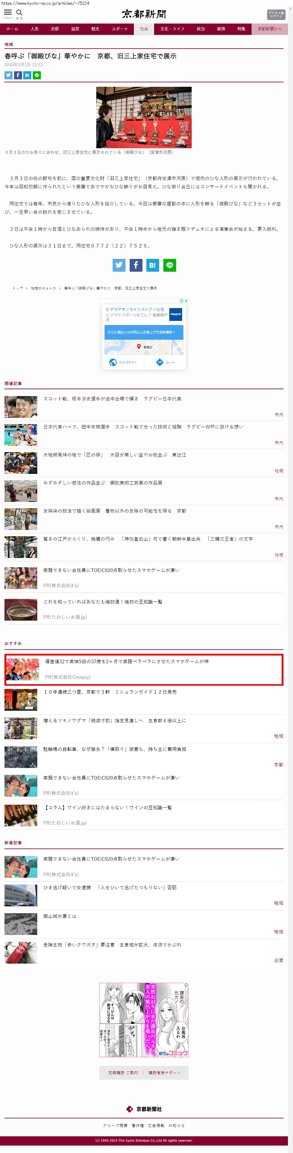 Webメディア 広告枠に赤枠付き