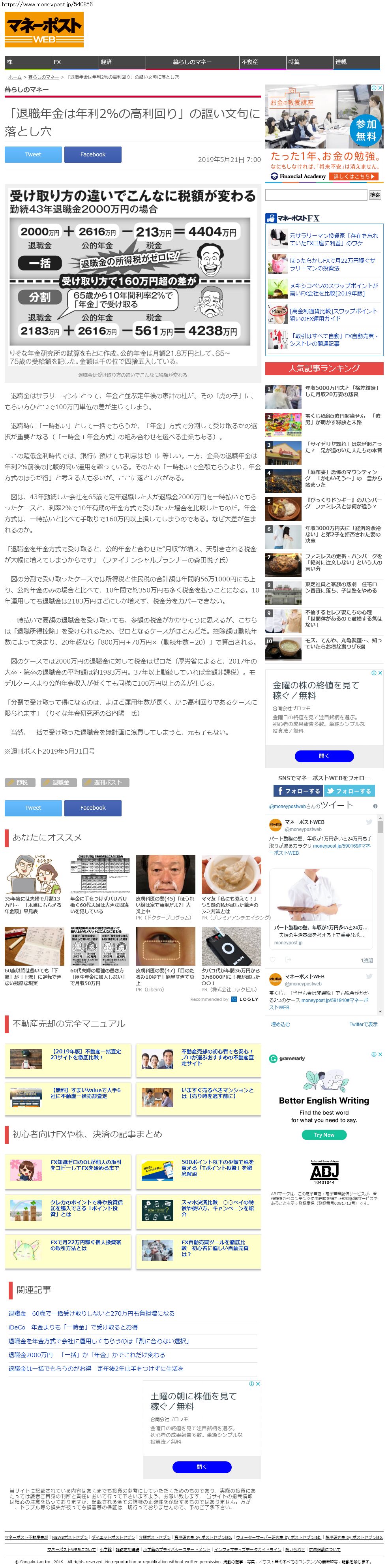 Webメディア 広告枠に赤枠付き