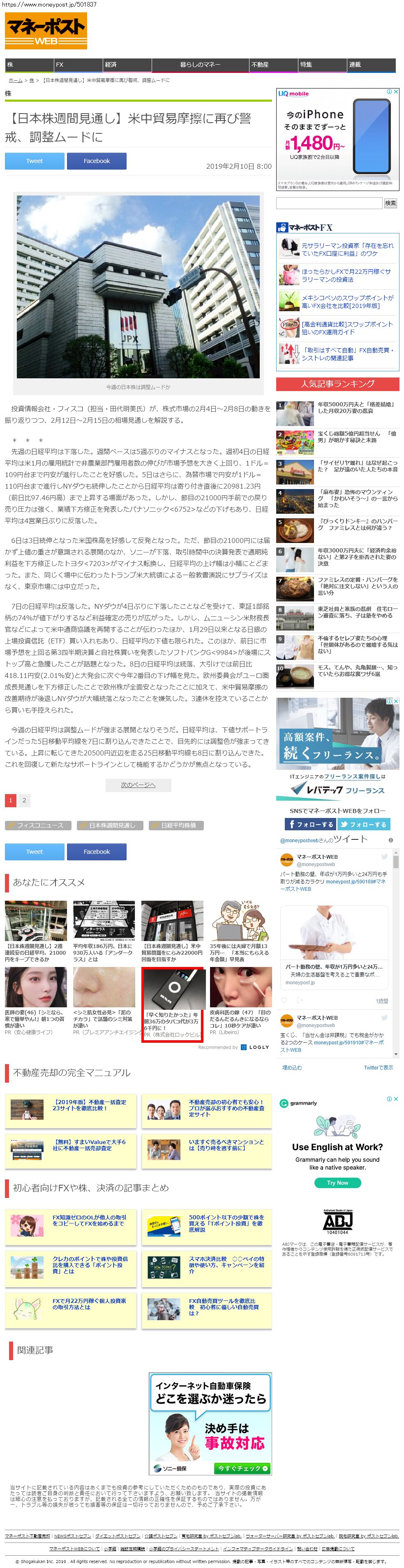 Webメディア 広告枠に赤枠付き