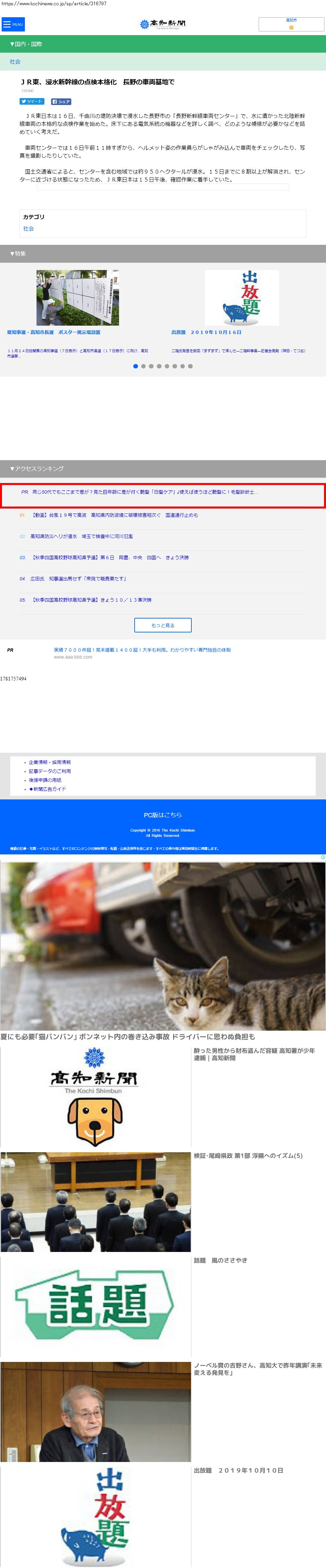 Webメディア 広告枠に赤枠付き