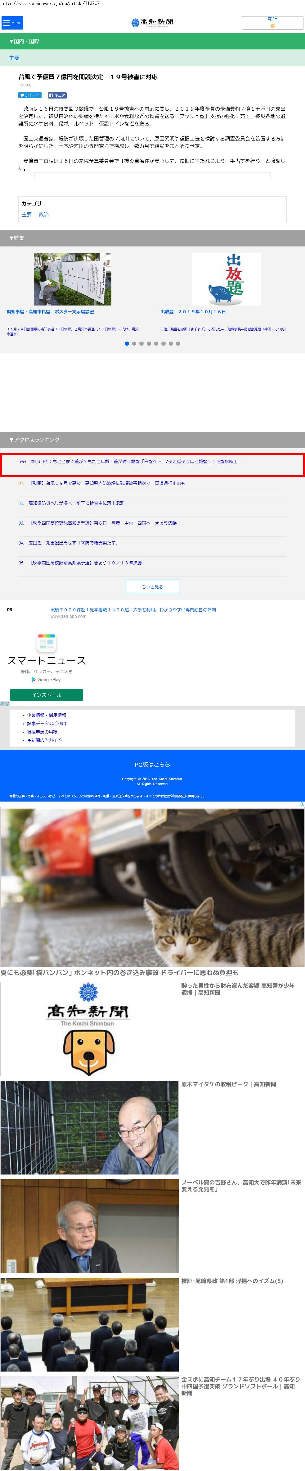 Webメディア 広告枠に赤枠付き