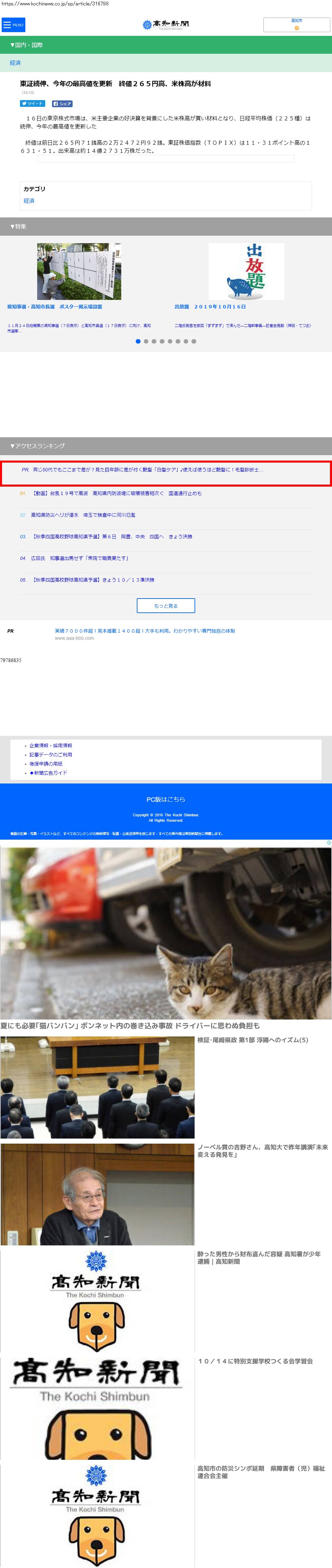Webメディア 広告枠に赤枠付き