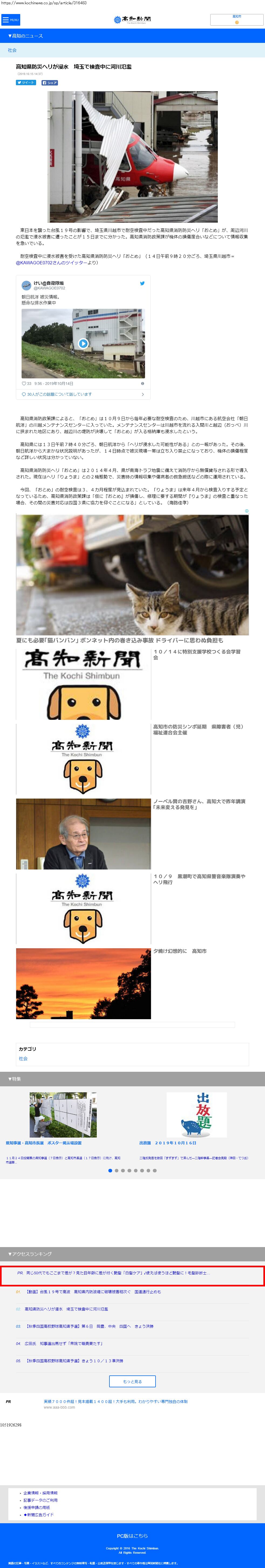 Webメディア 広告枠に赤枠付き