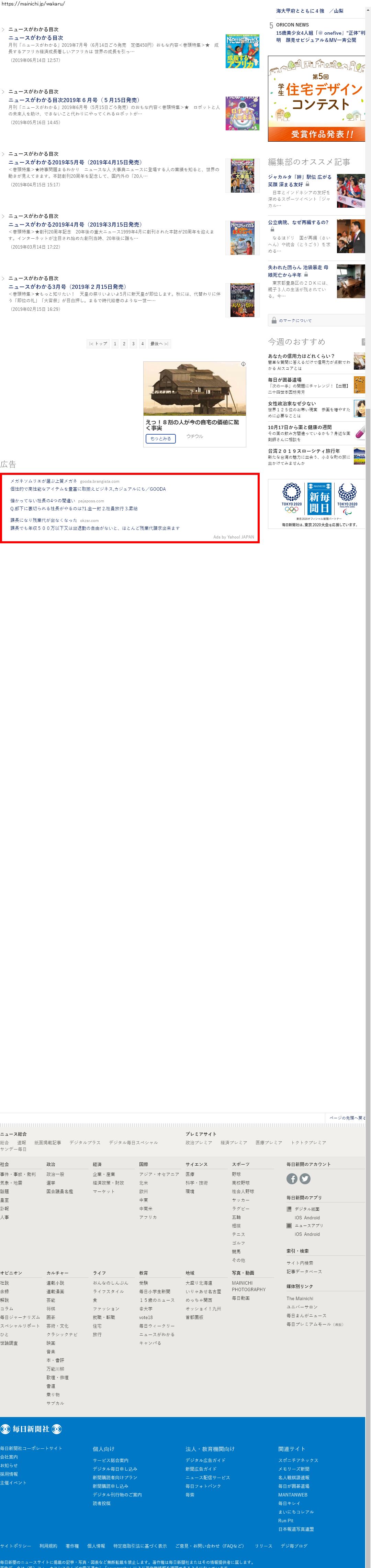 Webメディア 広告枠に赤枠付き