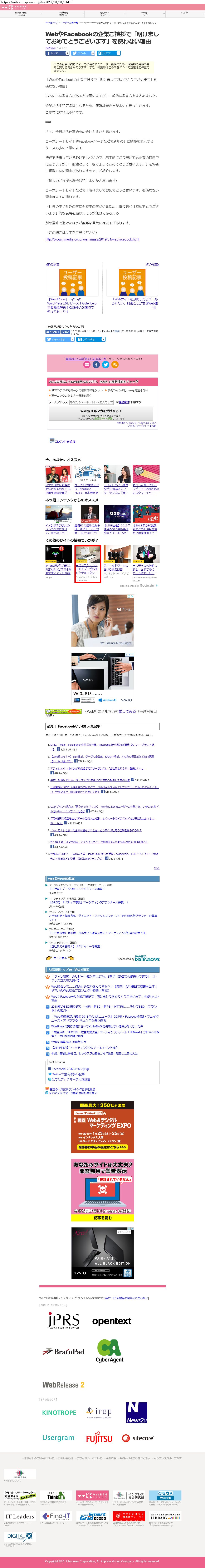 Webメディア 広告枠に赤枠付き