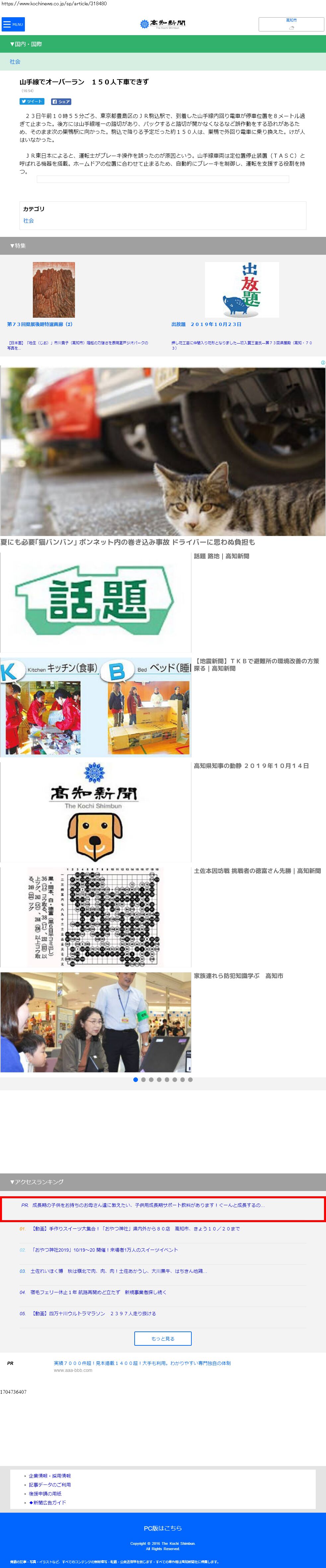 Webメディア 広告枠に赤枠付き