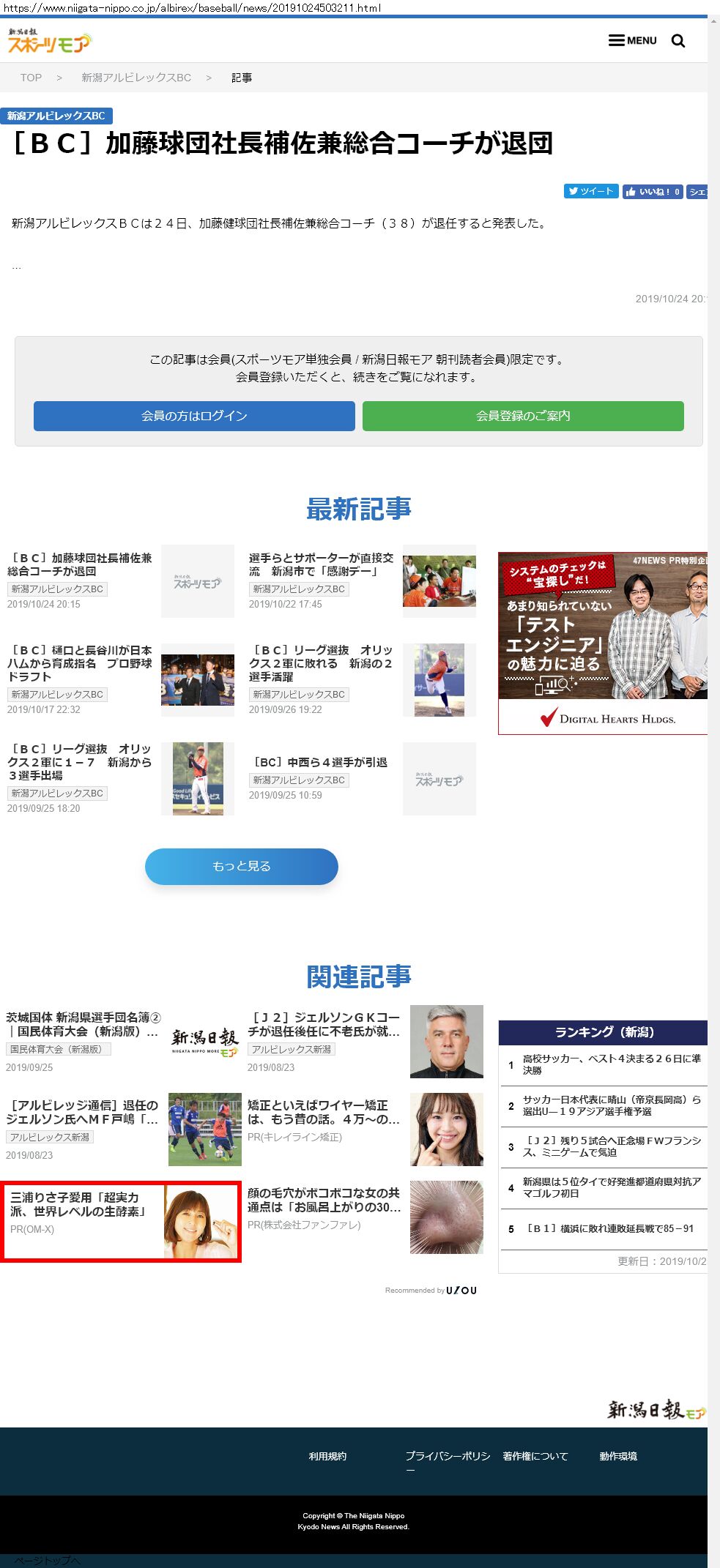 Webメディア 広告枠に赤枠付き