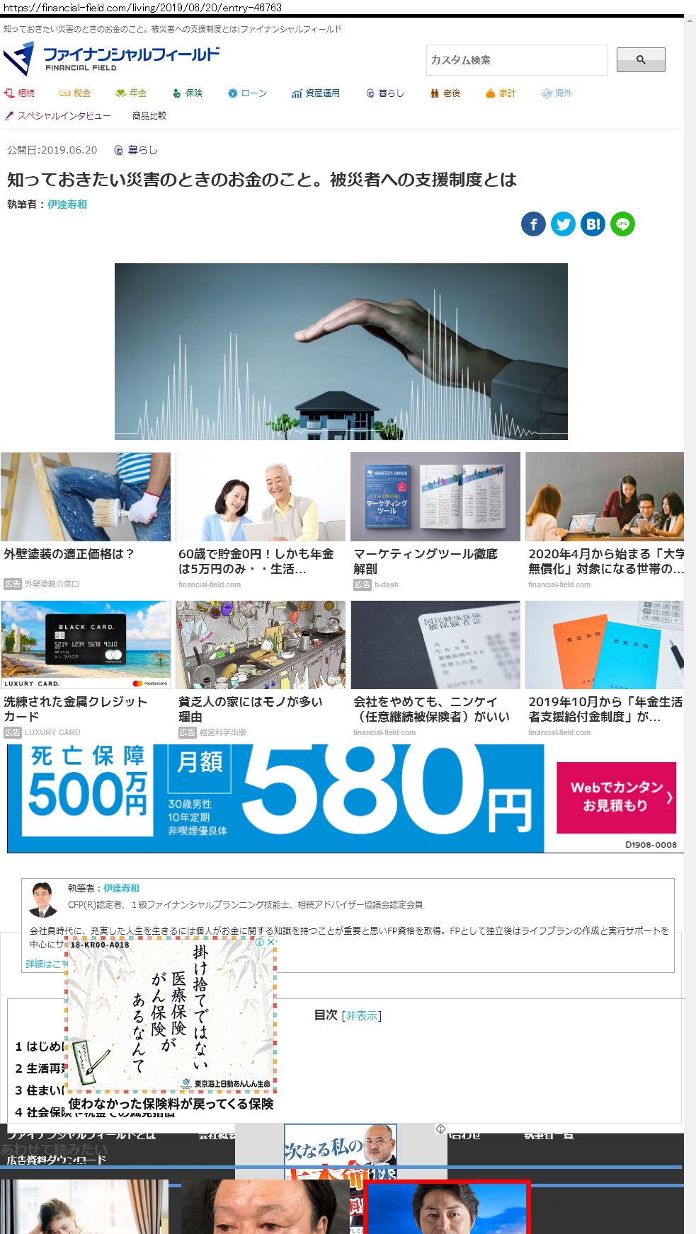 Webメディア 広告枠に赤枠付き