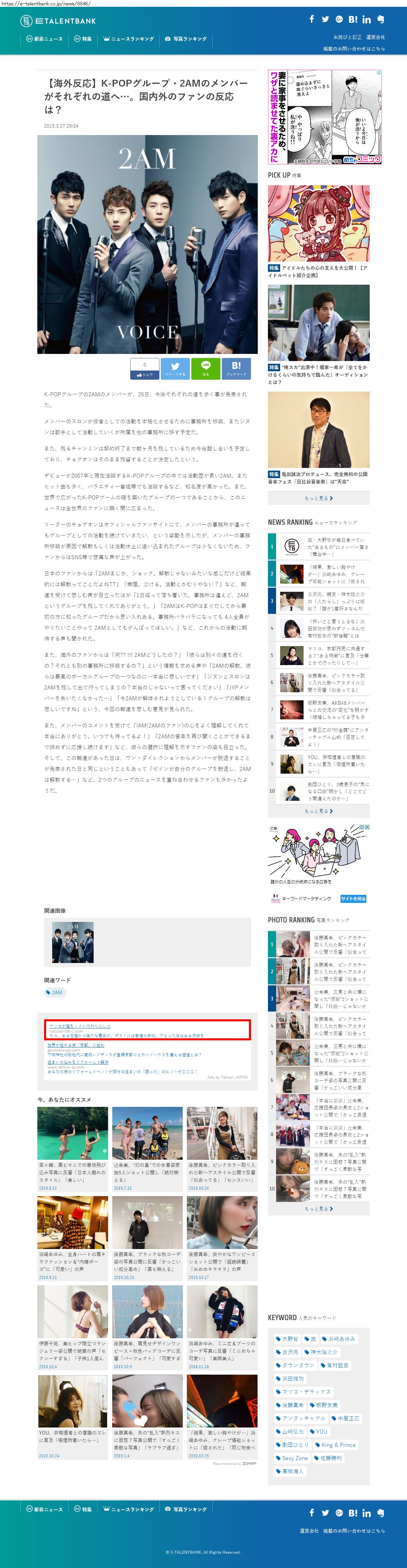 Webメディア 広告枠に赤枠付き