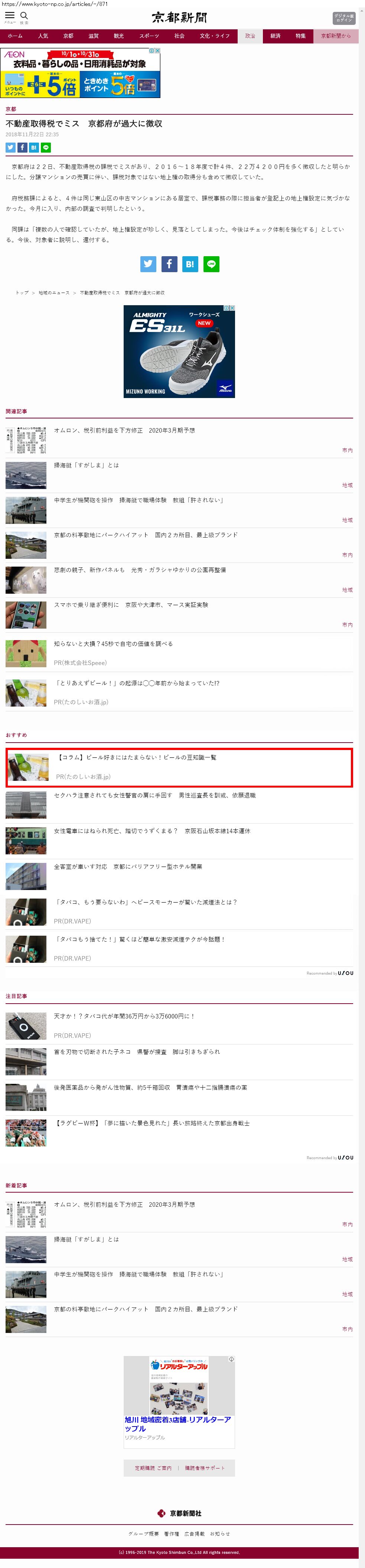 Webメディア 広告枠に赤枠付き