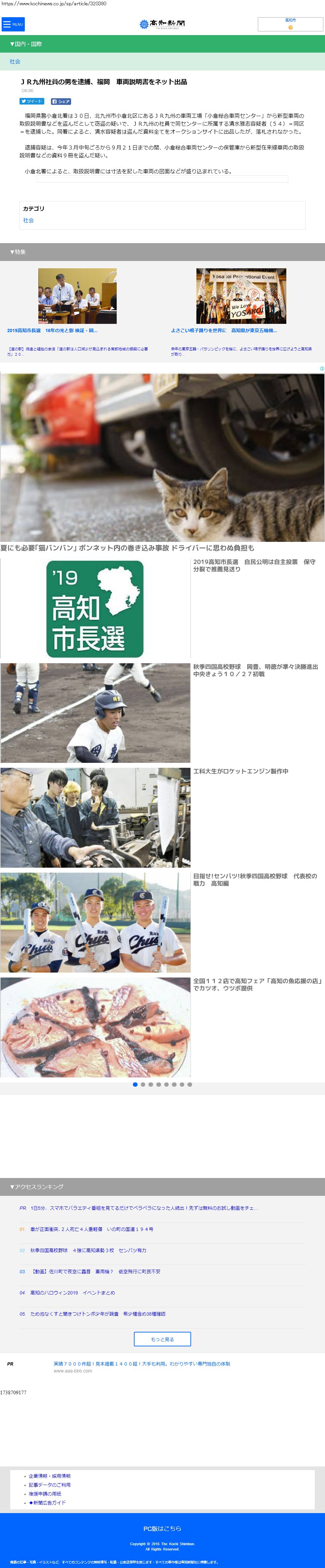 Webメディア 広告枠に赤枠付き