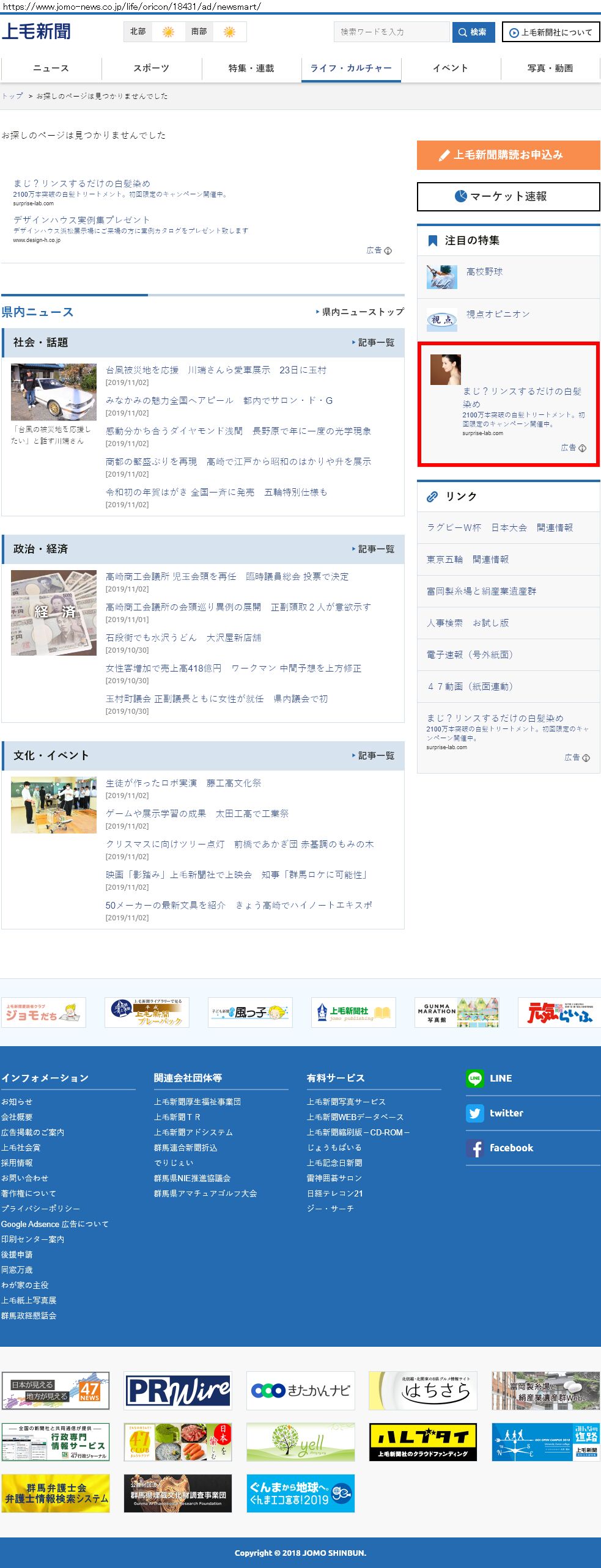 Webメディア 広告枠に赤枠付き