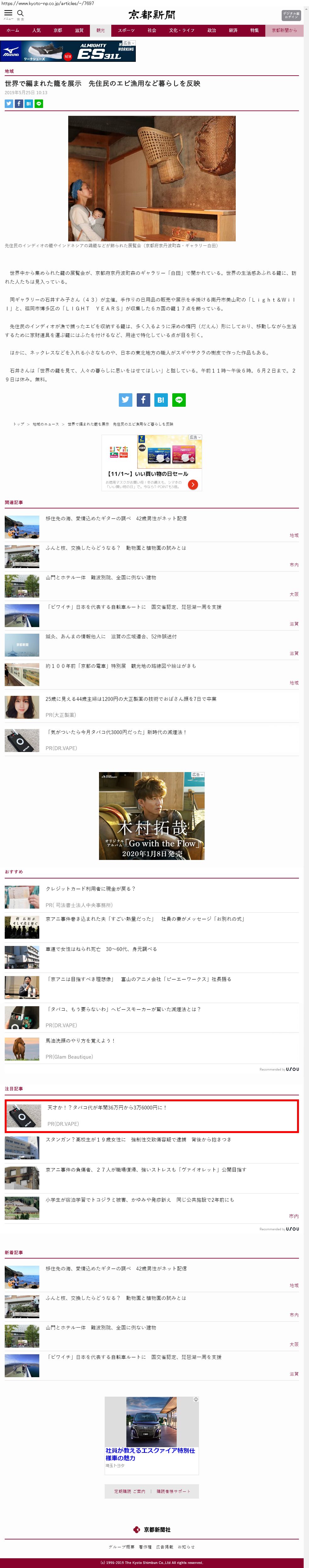 Webメディア 広告枠に赤枠付き