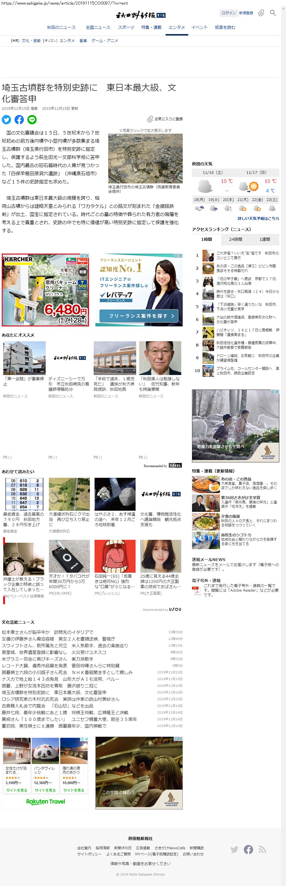 Webメディア 広告枠に赤枠付き
