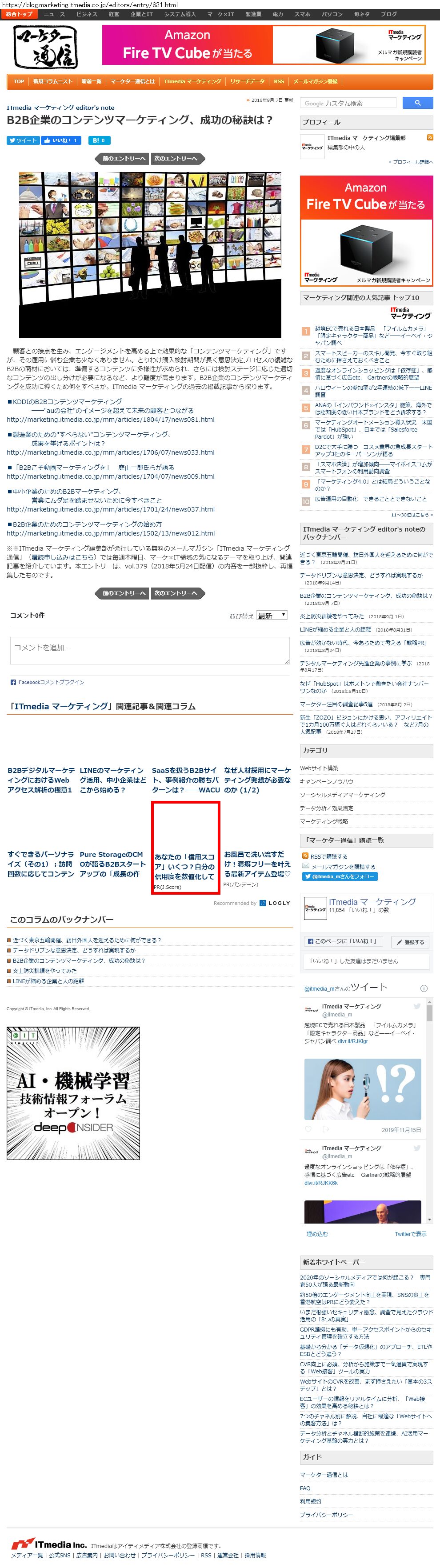Webメディア 広告枠に赤枠付き