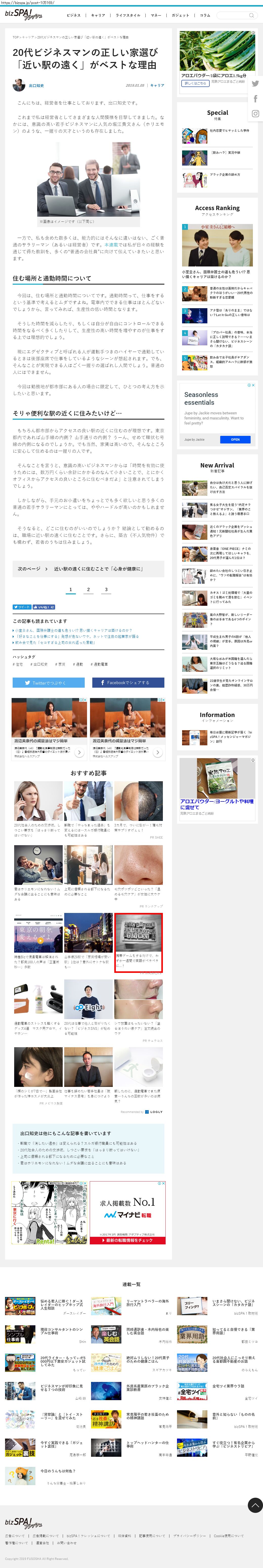 Webメディア 広告枠に赤枠付き