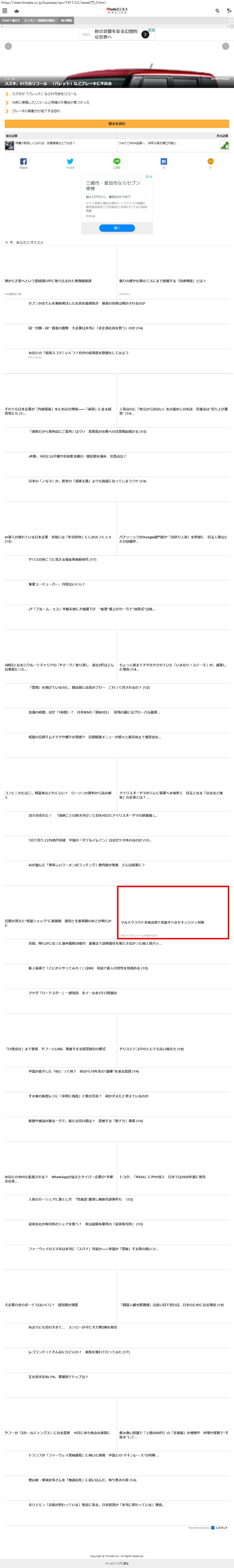 Webメディア 広告枠に赤枠付き