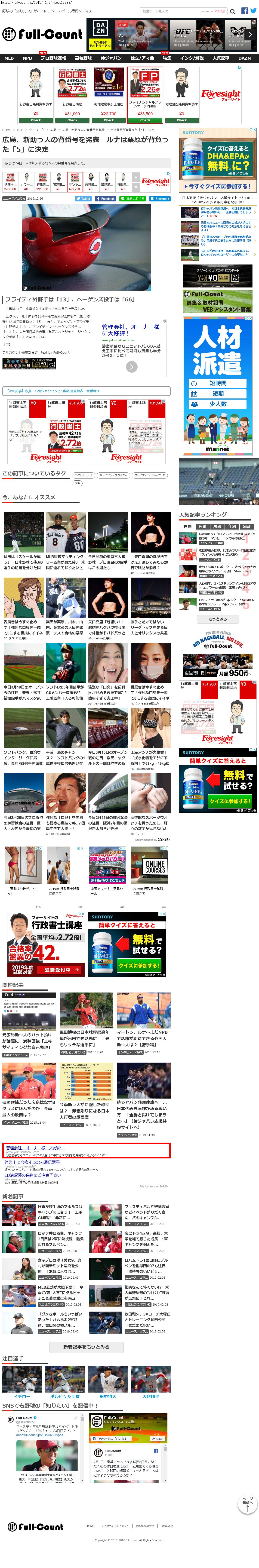 Webメディア 広告枠に赤枠付き