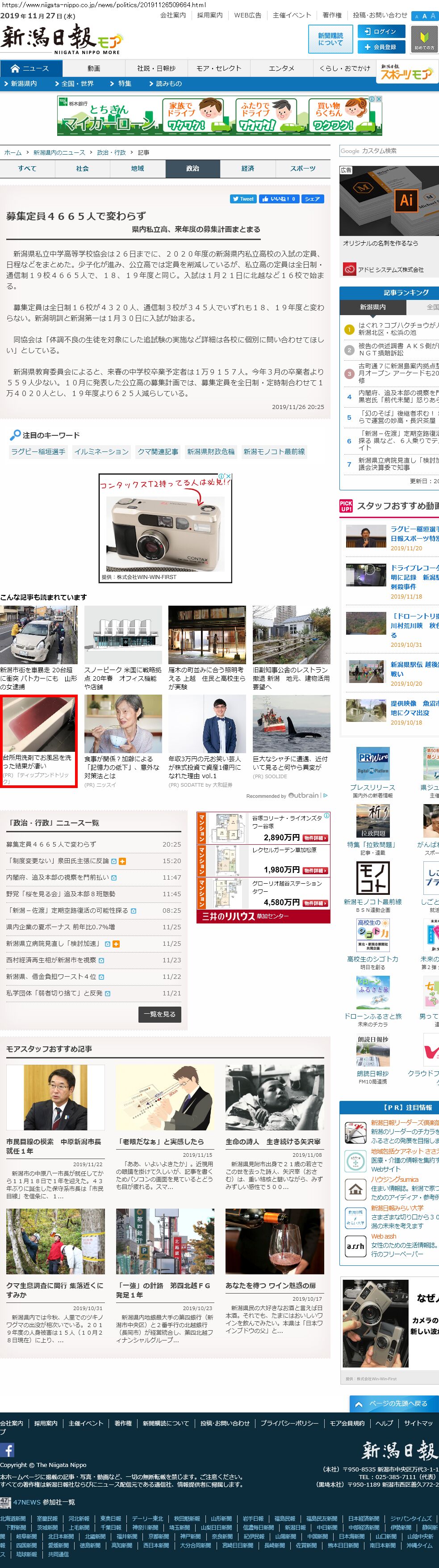 Webメディア 広告枠に赤枠付き