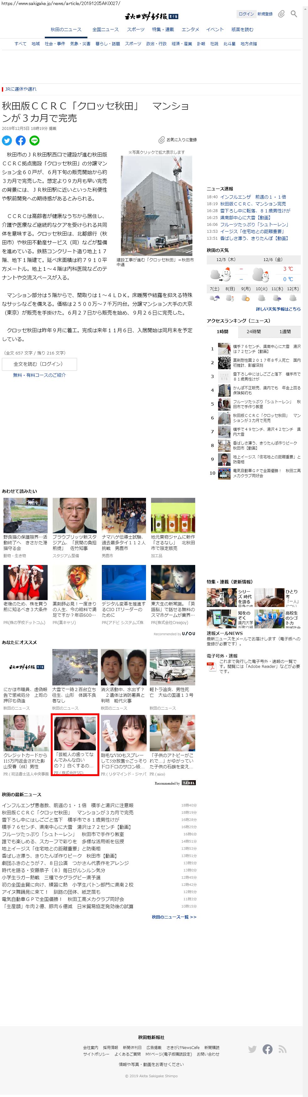 Webメディア 広告枠に赤枠付き