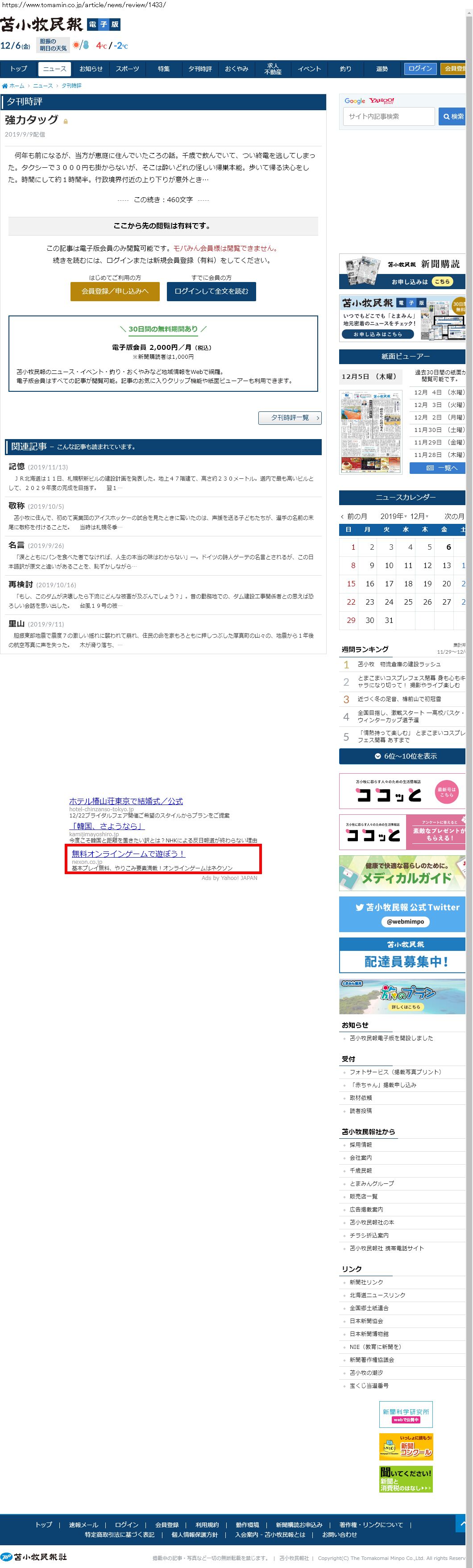 Webメディア 広告枠に赤枠付き