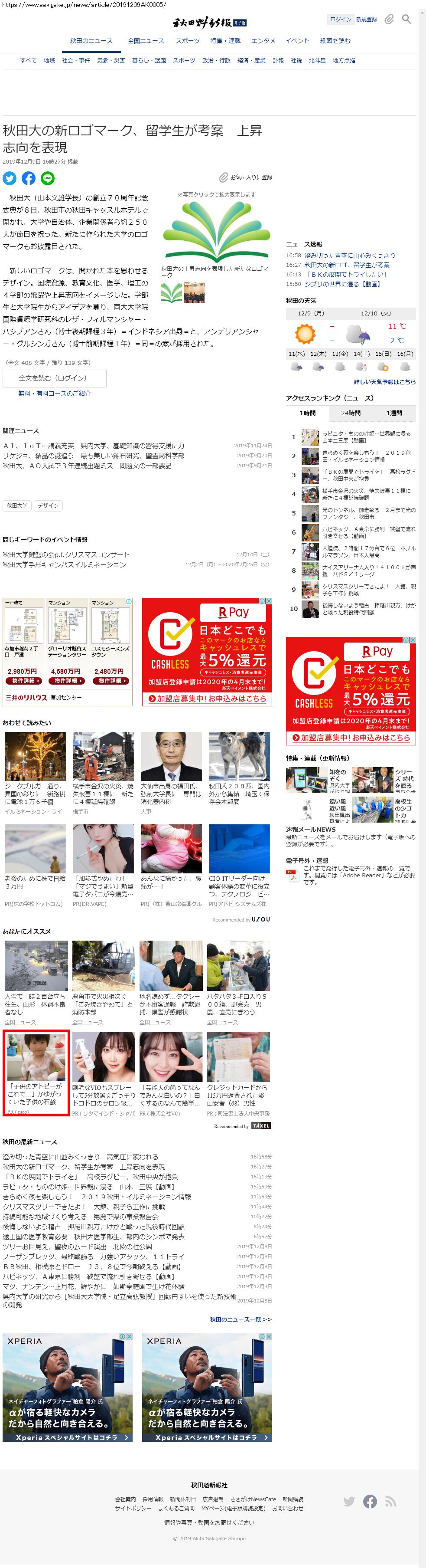 Webメディア 広告枠に赤枠付き