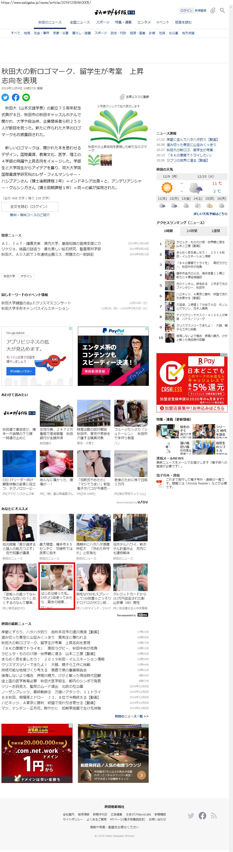 Webメディア 広告枠に赤枠付き
