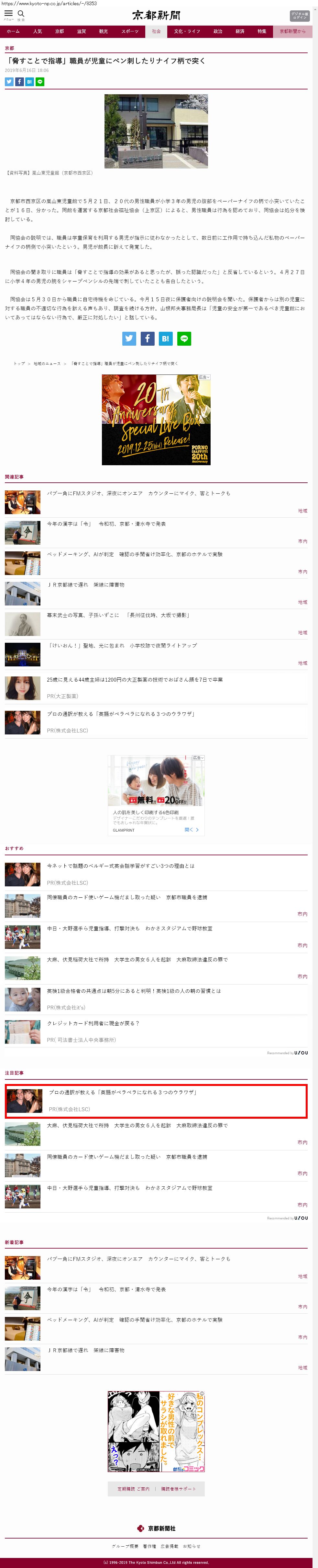 Webメディア 広告枠に赤枠付き