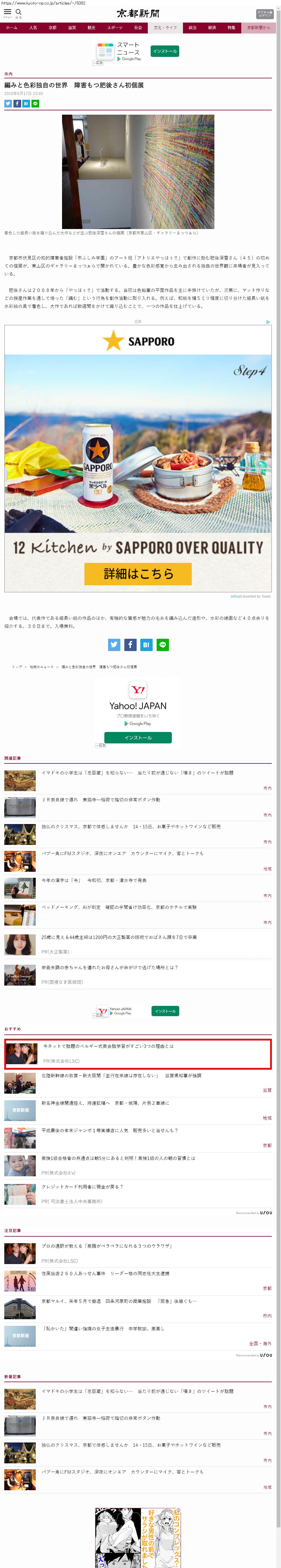 Webメディア 広告枠に赤枠付き