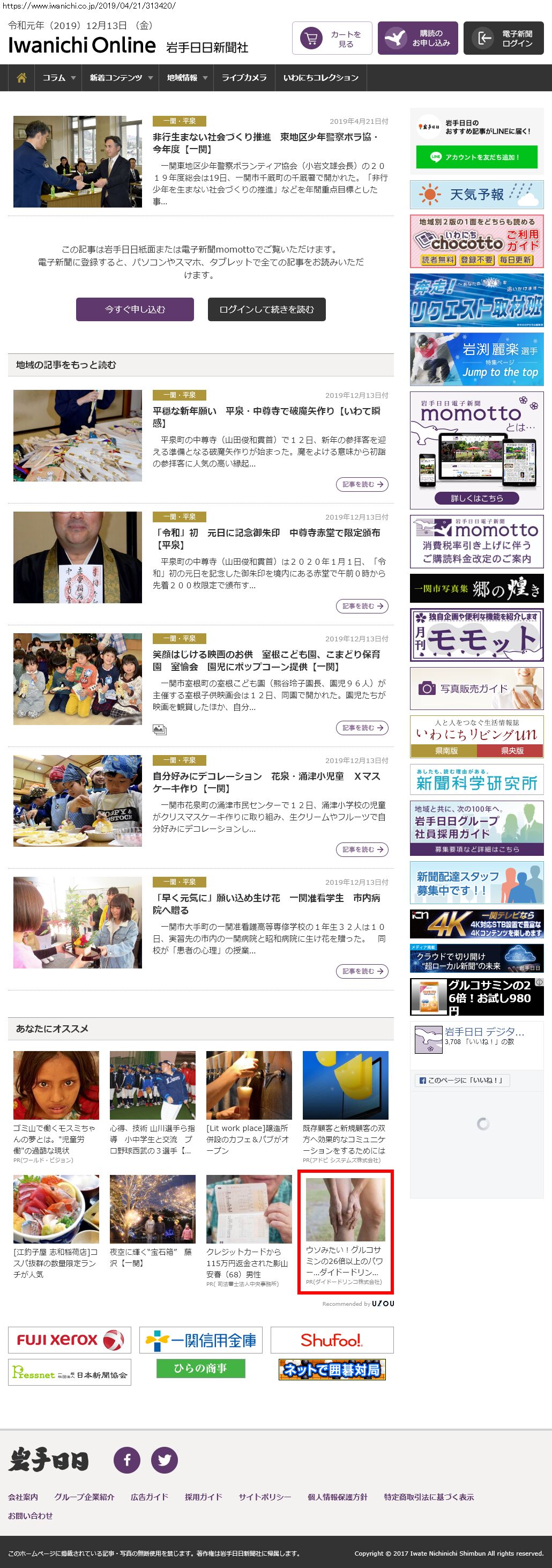 Webメディア 広告枠に赤枠付き