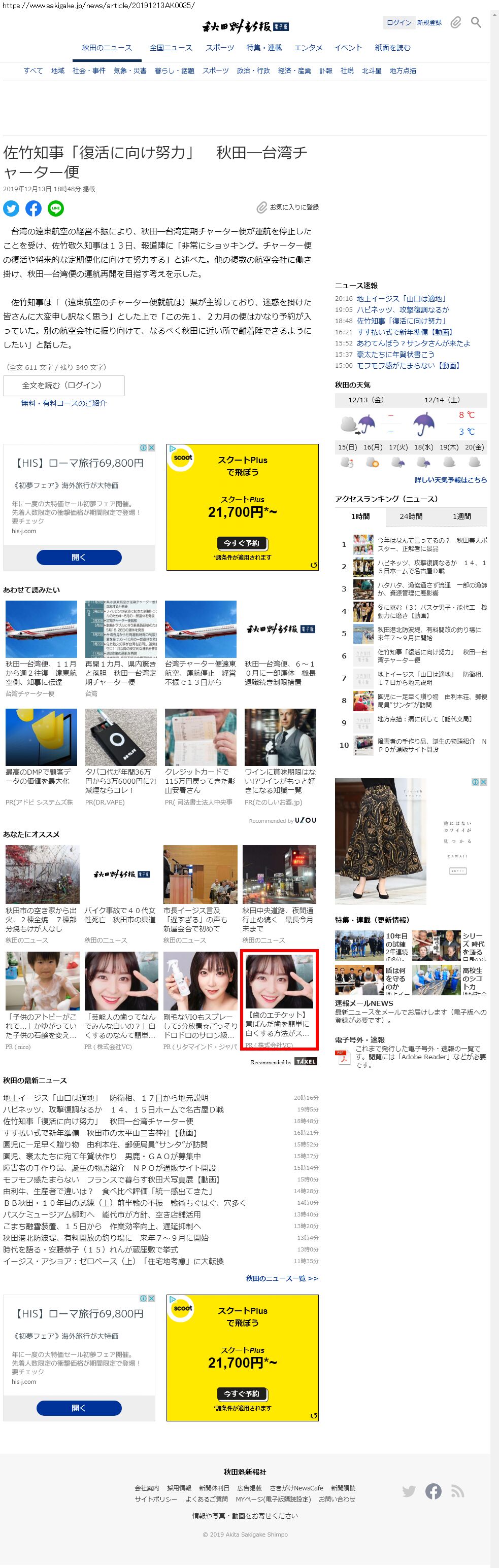 Webメディア 広告枠に赤枠付き