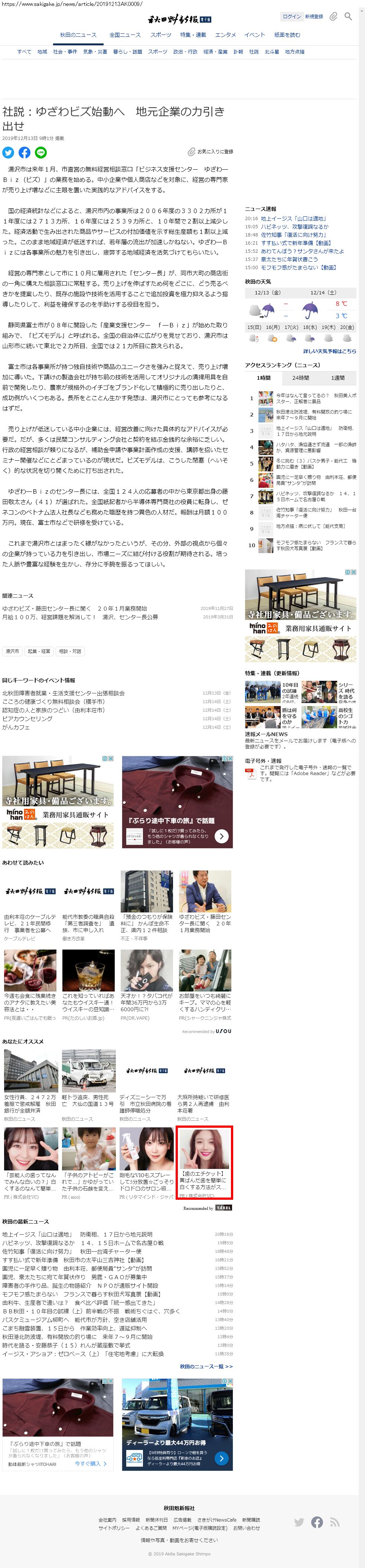 Webメディア 広告枠に赤枠付き
