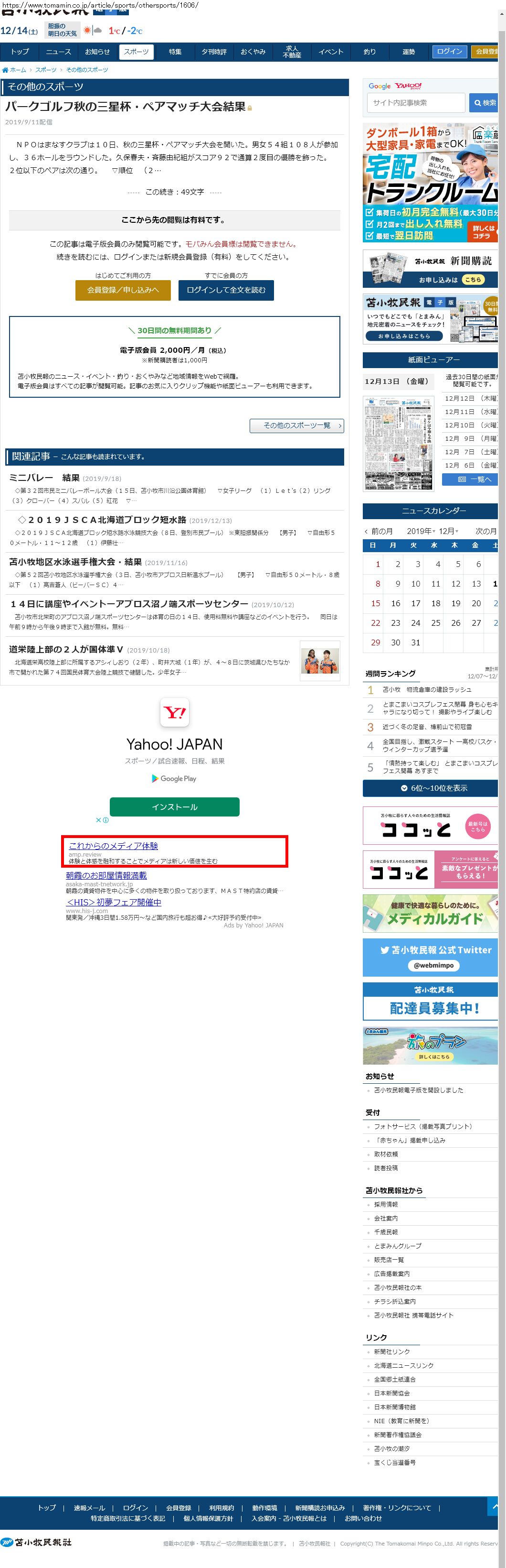 Webメディア 広告枠に赤枠付き