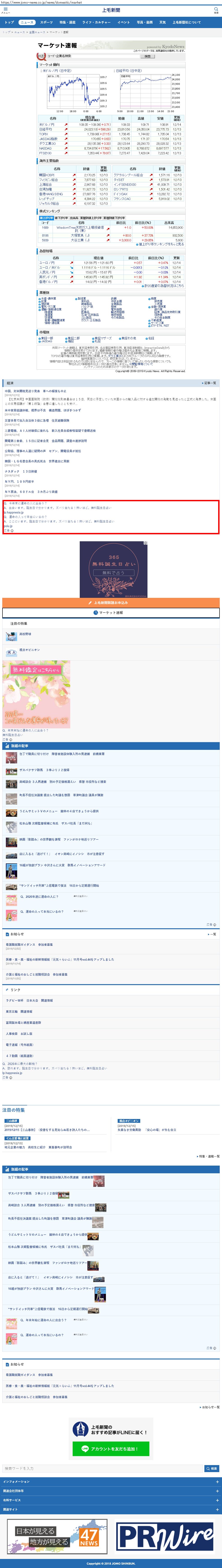 Webメディア 広告枠に赤枠付き