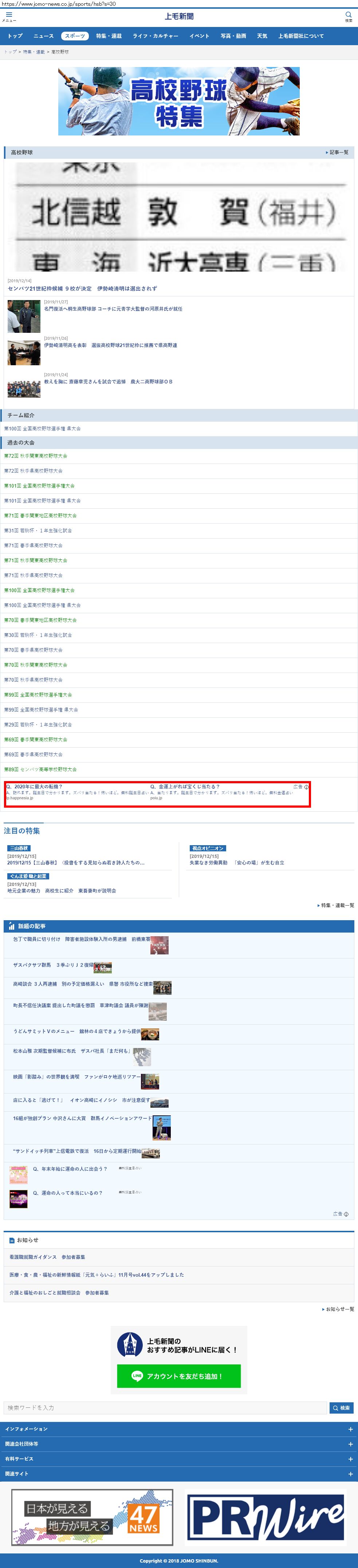 Webメディア 広告枠に赤枠付き